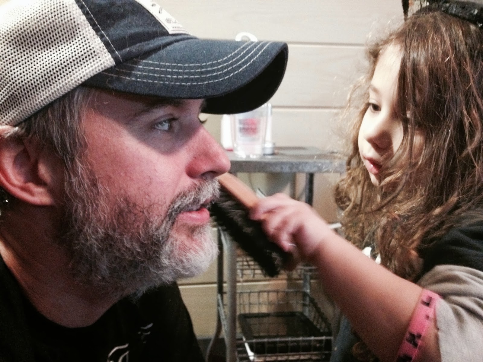 | Roni taking care of her father’s manly beard. |