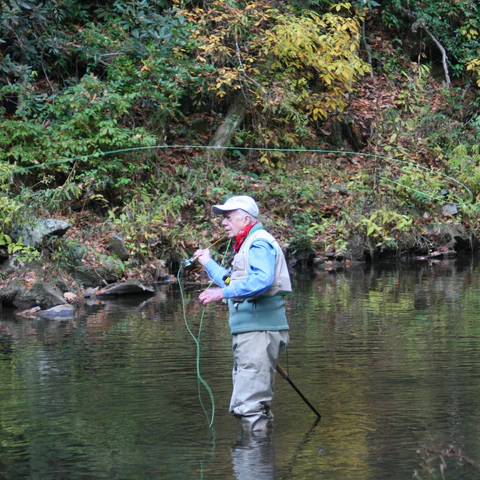 President Carter fishing at Brigadoon on the Soque River in Clarkesville, GA.